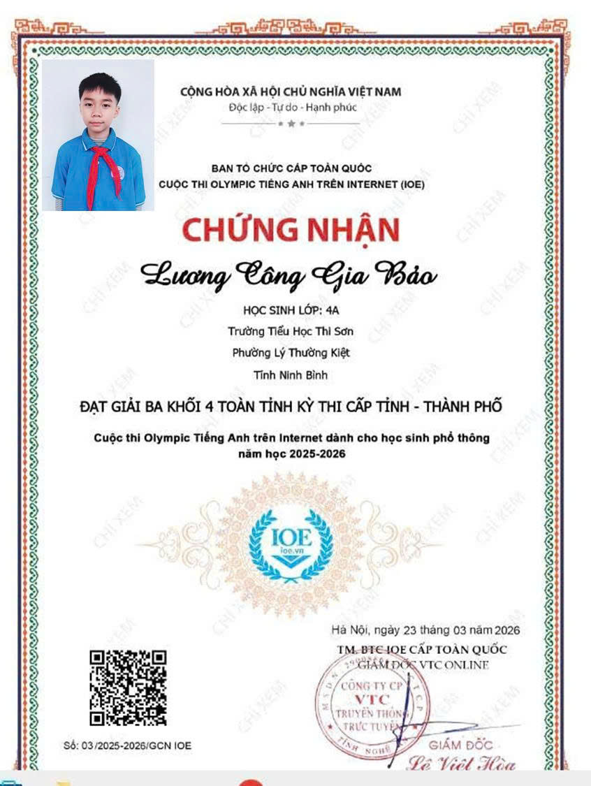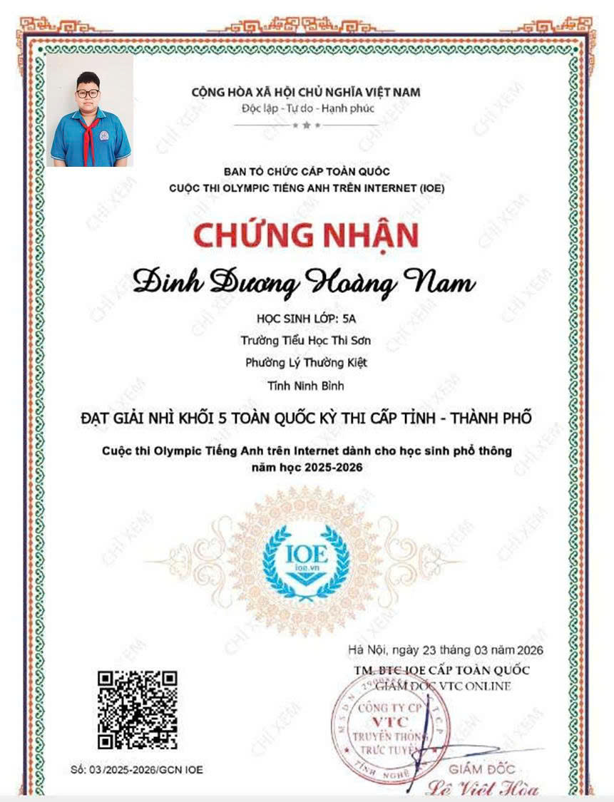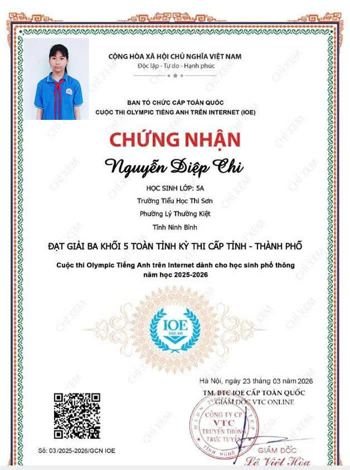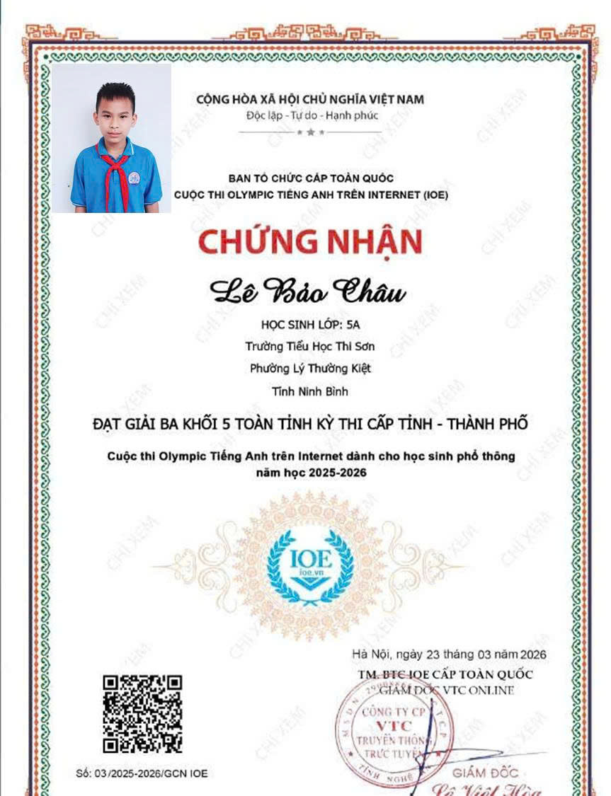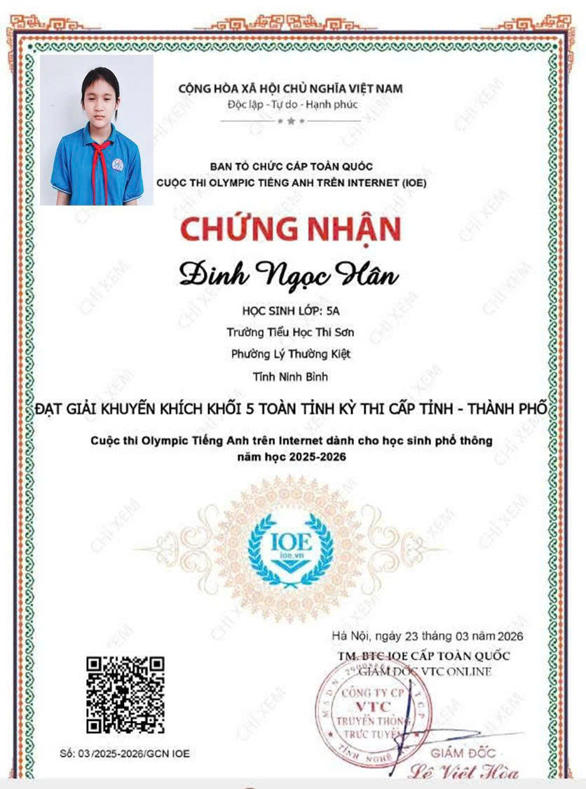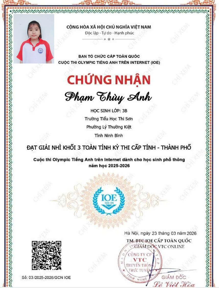 Trường Tiểu học Thi Sơn vinh danh học sinh có thành tích xuất sắc trong cuộc thi IOE cấp Tỉnh. Thành tích đạt được hôm nay là kết quả của sự nỗ lực bền bỉ của các em học sinh, sự tận tâm của thầy cô giáo và sự đồng hành, quan tâm của các bậc phụ huynh. Nhà trường tin tưởng rằng, trong thời gian tới, các em sẽ tiếp tục phát huy năng lực, chinh phục những sân chơi trí tuệ cao hơn.